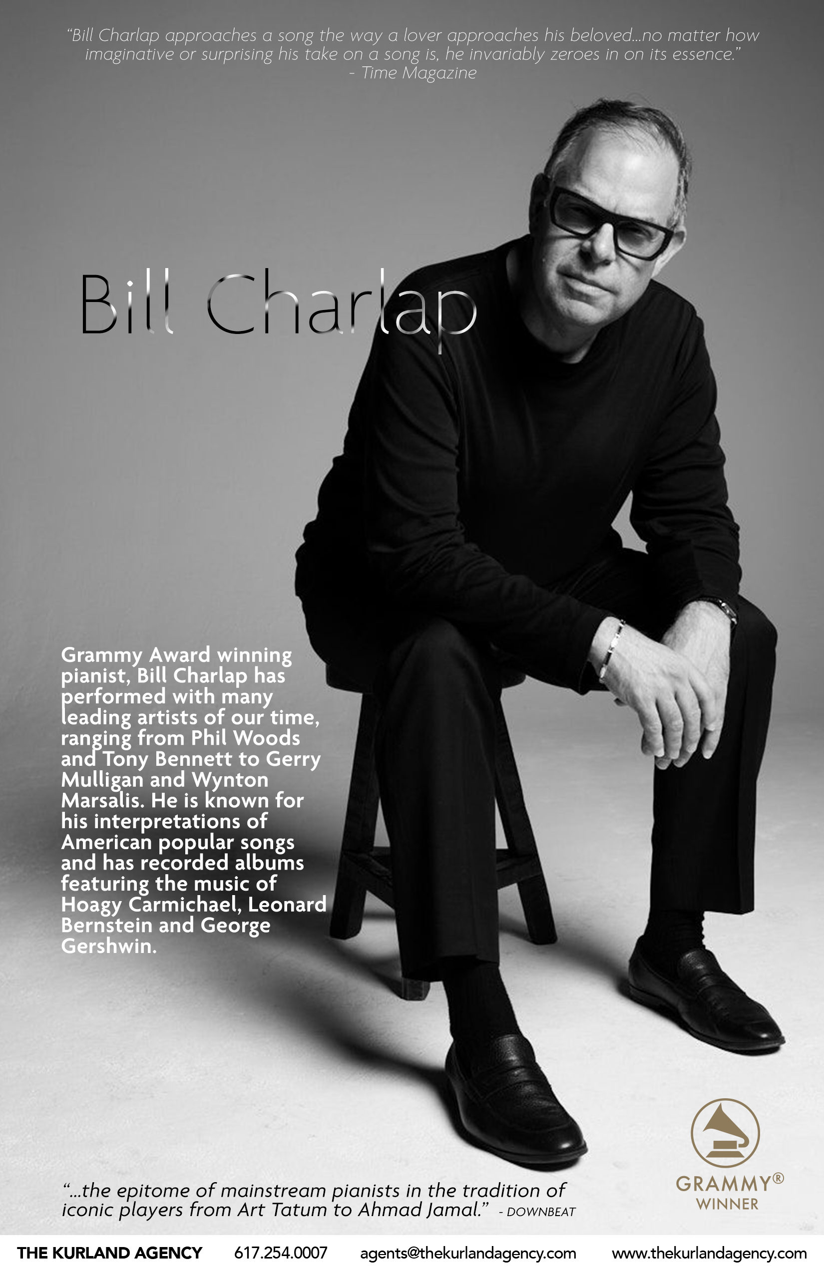 Grammy award winning pianist BILL CHARLAP has performed with many of the leading artists of our time, from Wynton Marsalis and Tony Bennett to Phil Woods and Ron Carter. He is acclaimed for his interpretations of the American Popular Songbook and has recorded albums featuring the music of Hoagy Carmichael, Leonard Bernstein, George Gershwin, Irving Berlin, Cole Porter, Richard Rodgers and Duke Ellington.