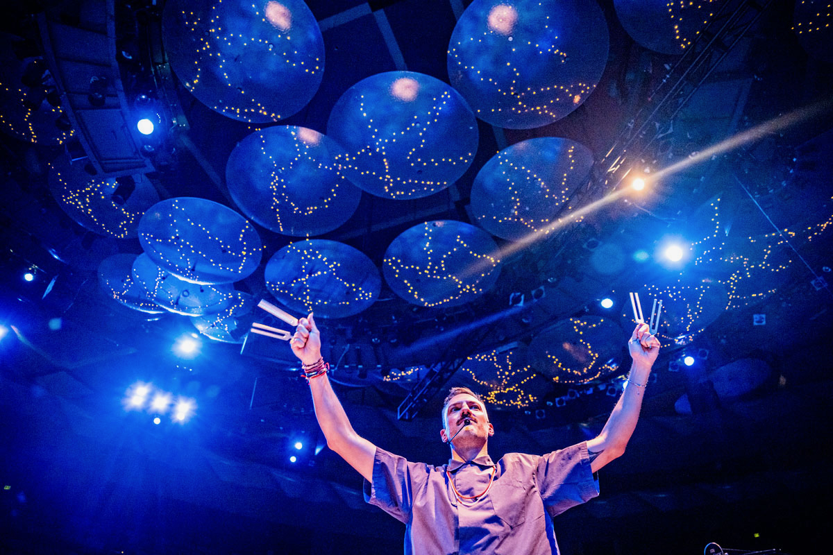 He is the creator of The RESET, an immersive sound healing experience that he has brought to iconic spaces and stages like The Kennedy Center’s Concert Hall, Chicago’s famed Orchestra Hall, Nashville’s Schermerhorn Symphony Center, Finney Chapel at the Oberlin Conservatory of Music and the roof of Ace Hotel. This experience features Davin using improvisational singing through looping devices as well as overtone-emitting instruments to create a sonic container for restoration and healing. What makes this experience truly unique is the subtle integration of electronic beats and the emergence of improvised music that reflects the wonder and beauty of each person present.